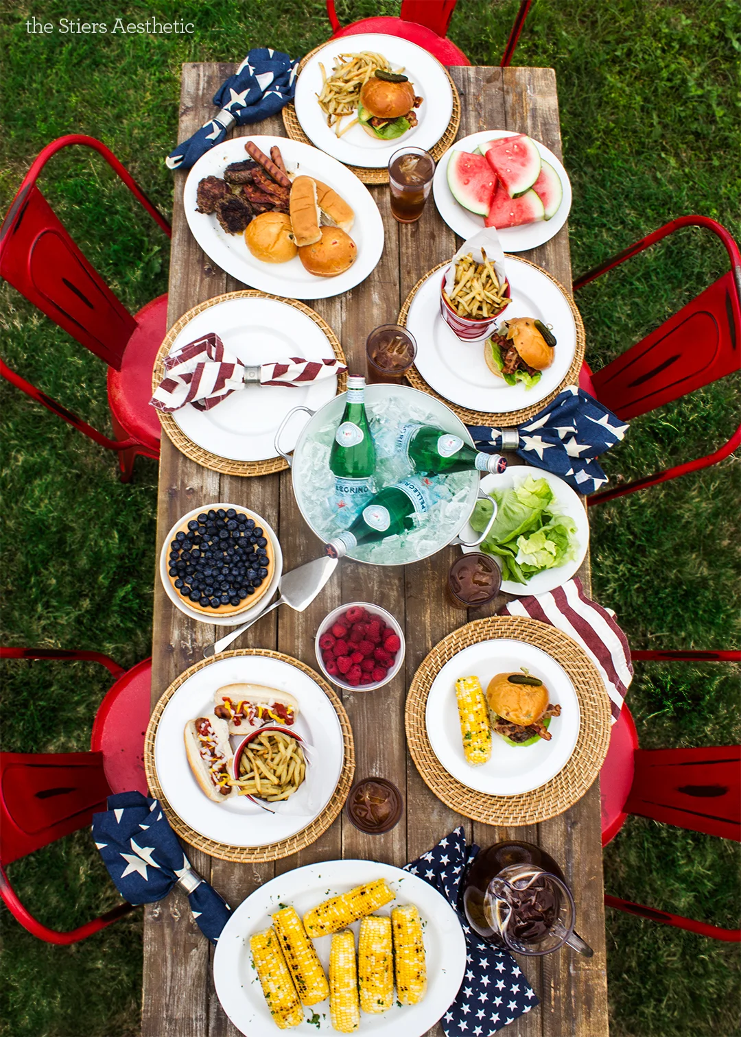 It's finally summer. When it's not 100 degrees, here in the south, it's one of my favorite food seasons. You can't go wrong with the classic, American staples; hotdogs, cheeseburgers, French fries and corn on the cob. I also love this time when we celebrate with all things red, white and blue. When done tastefully ('case you can definitely OVERDO it), this nod to the good ole USA, makes for a beautiful presentation.